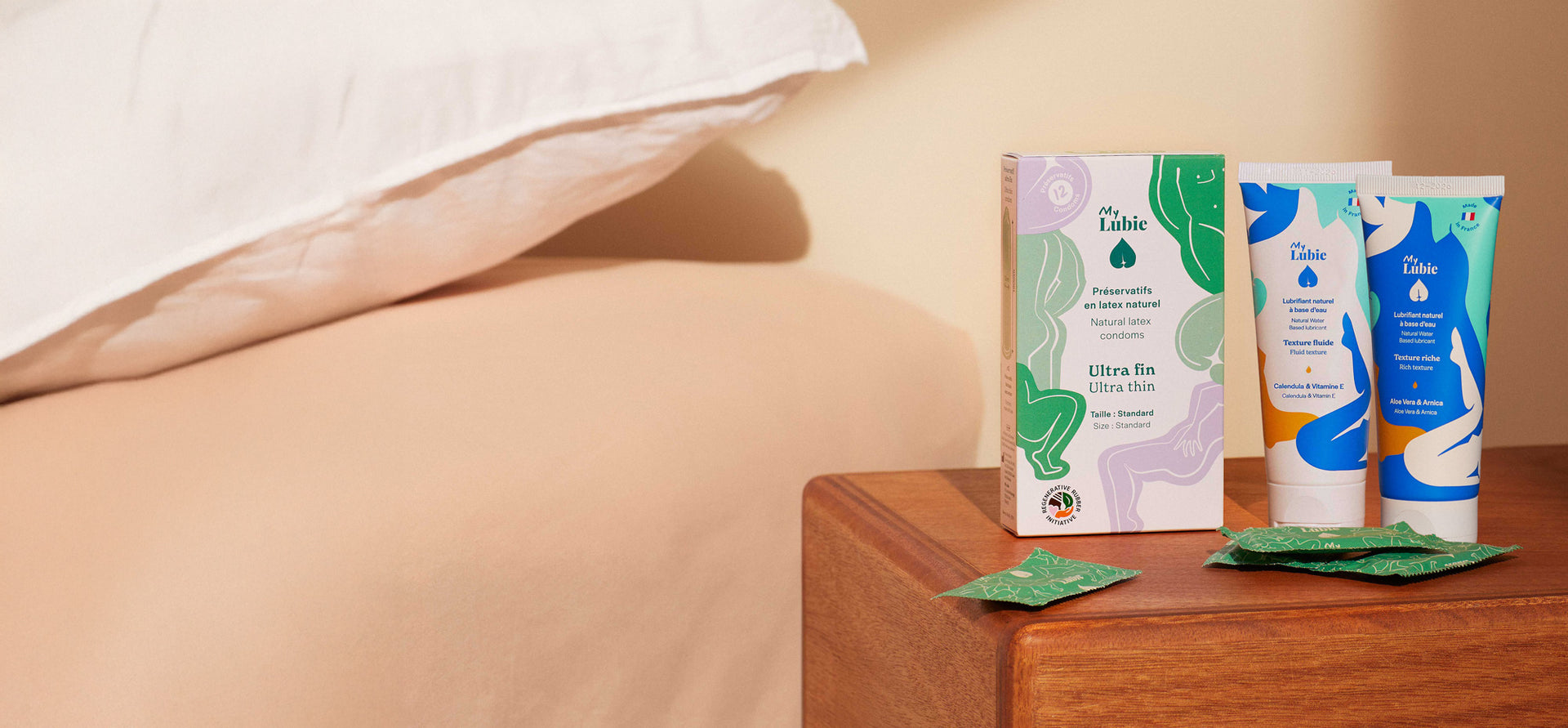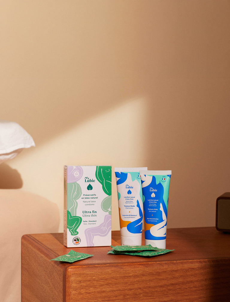 Fabriqués à partir de latex naturel, nos préservatifs ultra fins sont responsables, équitables et surtout, ultra résistants. Labellisés RRI, ils sont respectueux des corps et de l'environnement. Les préservatifs My Lubie sont sans ingrédients dangereux ni controversés (sans perturbateurs endocriniens), vegan et sans odeur.