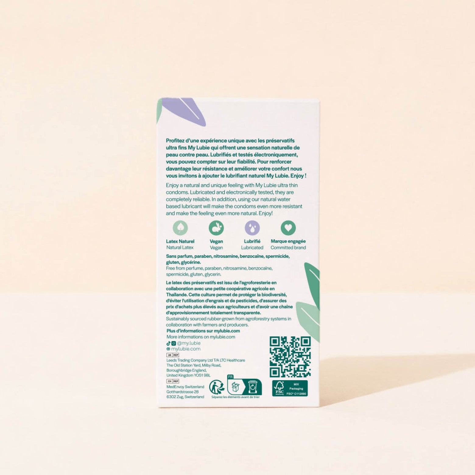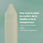Une protection indispensable contre les MST, IST ou grossesses non désirées… Mais qui sait se faire oublier. Pour développer nos préservatifs ultra-fins, il nous fallait de la fiabilité, zéro ingrédient controversé, du latex durable et aucune odeur désagréable. La voici : une boîte de 12 préservatifs, fabriqués par une usine spécialisée, à partir de latex naturel équitable labélisé RRI (Regenerative Rubber Initiative).